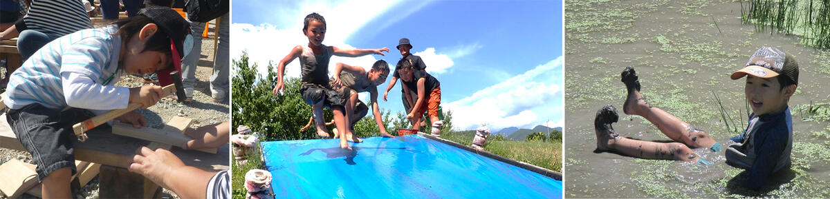 ここでは、泥だらけになって遊んだり、木に登ったり、秘密基地を作ったり、焚き火を囲んだり・・・子どもたちが主役になって、遊びを自分で見つけ、創り出します。